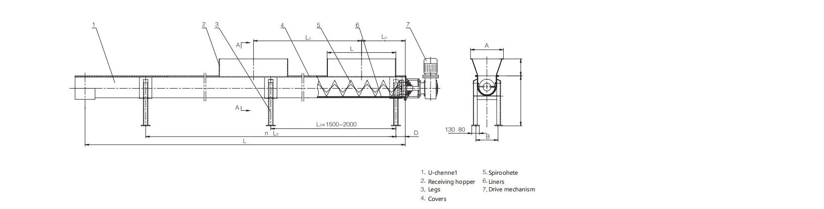 Los transportadores de tornillo no deben usarse para longitudes o alturas excesivas, de lo contrario la carga del motor será alta y las cuchillas se desgastarán rápidamente. El transporte horizontal suele ser el mejor; Si es necesaria la inclinación, el ángulo de inclinación debe controlarse por debajo de 20°.